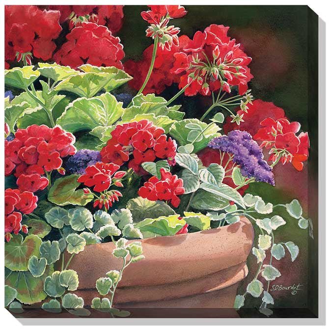 The beautiful Geraniums are in full bloom in this Susan Bourdet's wrapped canvas.