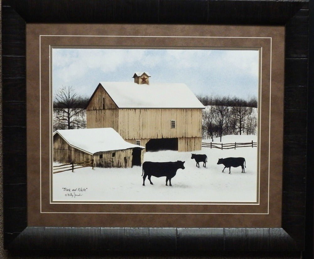 Billy Jacobs Black and White Farm Cow Art Print-Framed