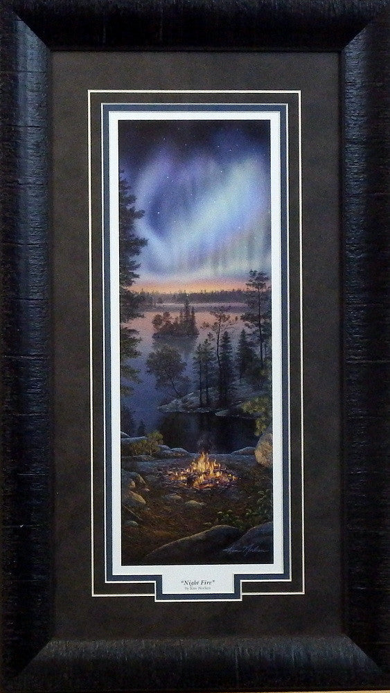 The campfire glows brightly as the Northern lights provide the magical display the campers can enjoy.