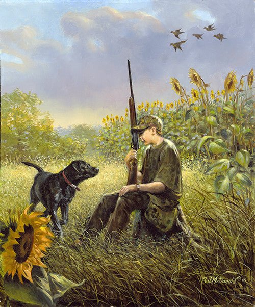 Boy Hunting with Black Lab