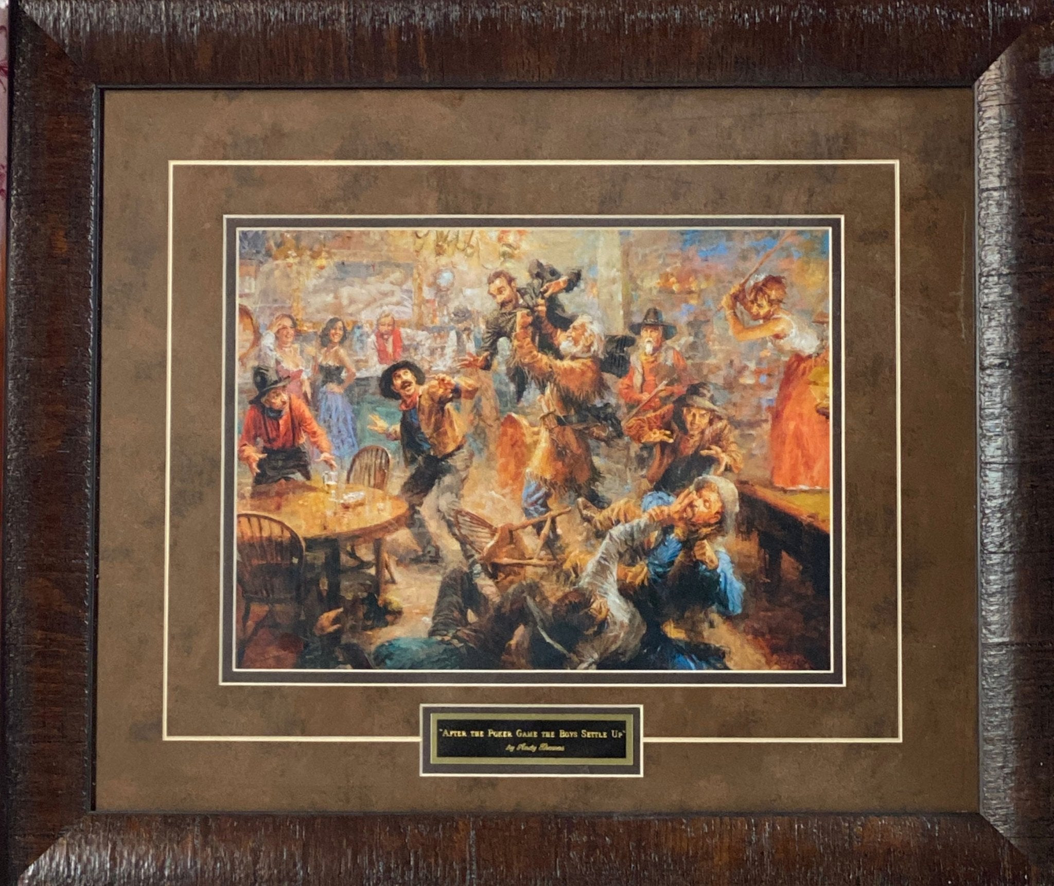 After the Poker Game the Boys Settle Up Cowboy Art Print Framed 21" x 18"