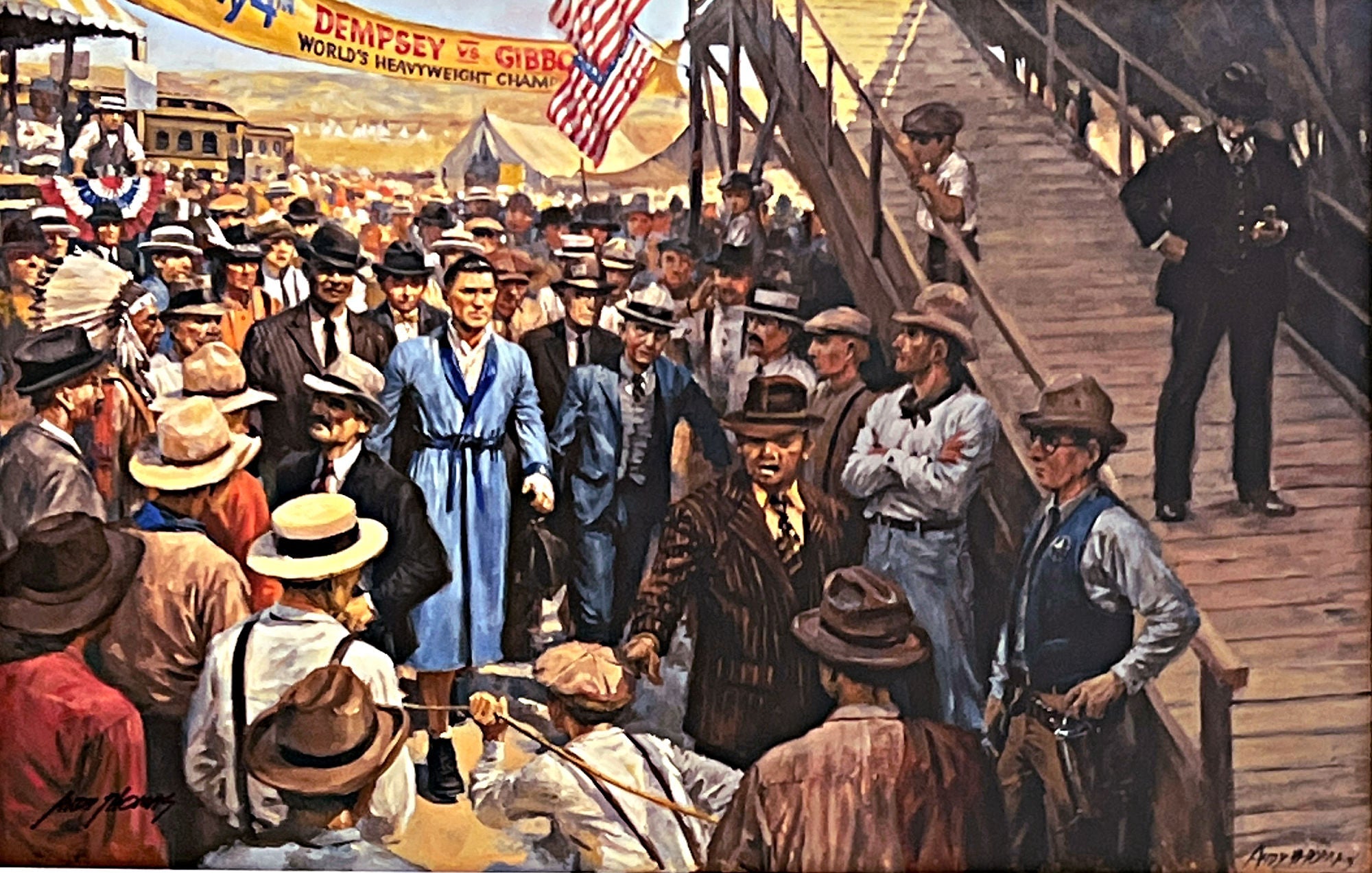Andy Thomas Signed Historical Boxing Art Print Dempsey vs Gibbons (17x11)