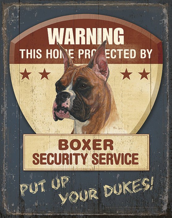 This boxer was originally painted by Mia Lane and transferred onto these tin metal signs to create a great home or cabin decor piece. The boxer breed is known for loyalty and bravery. The boxer's intelligence and courage make them the perfect dog for use in military or police work. A great gift to buy for any owner or lover of Boxer dogs.