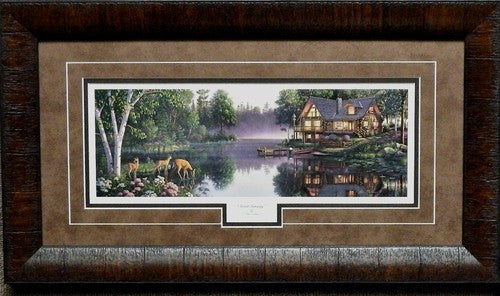 Kim Norlien Sweet Serenity Deer Lake Cabin Print-Framed 23 x 13