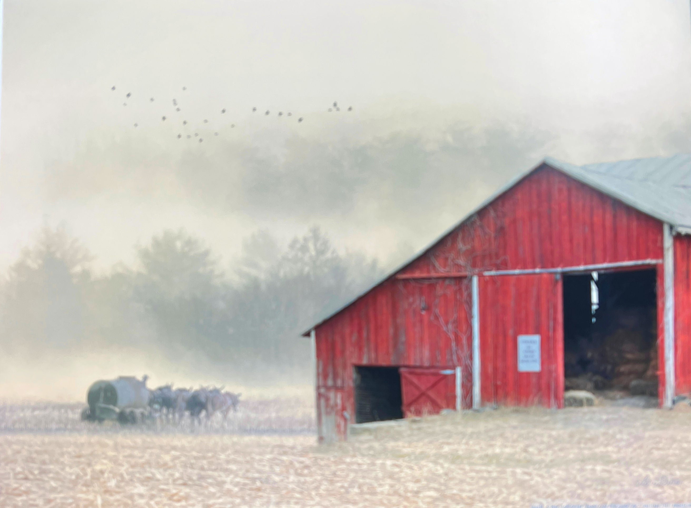 Lori Deiter Nostalgic Farm Barn PAPER Art Print An Early Start (16"x12")