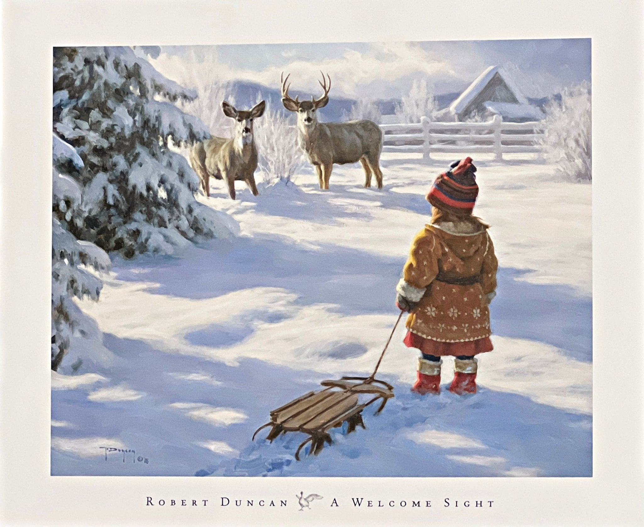Robert Duncan A Welcome Sight Girl Deer Art Print 20 x 16