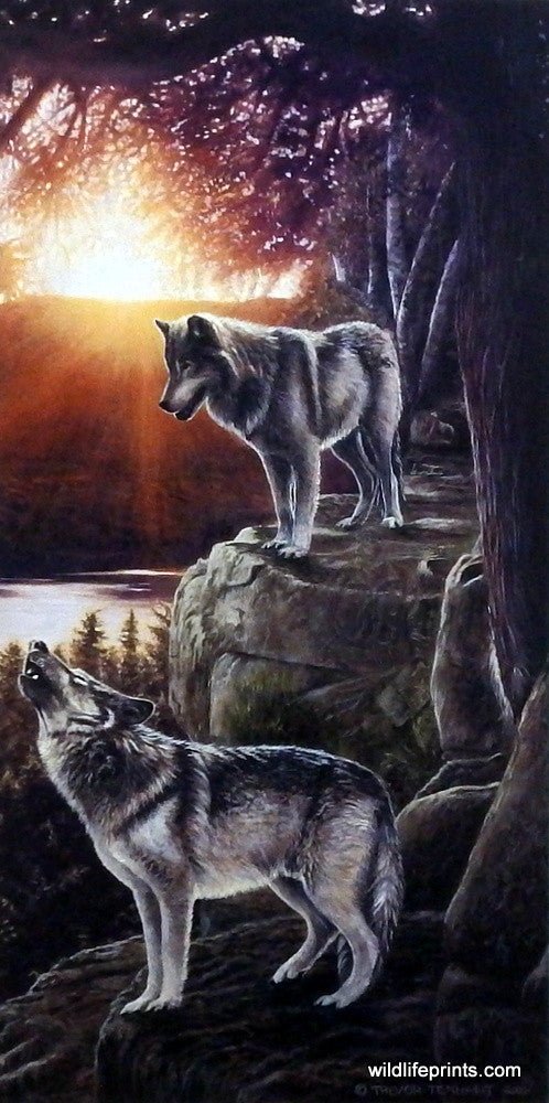 Trevor Tennant has painted a great wolf print. The two hang on the top of the cliffs from the river, and as the sunsets they SERENADE.